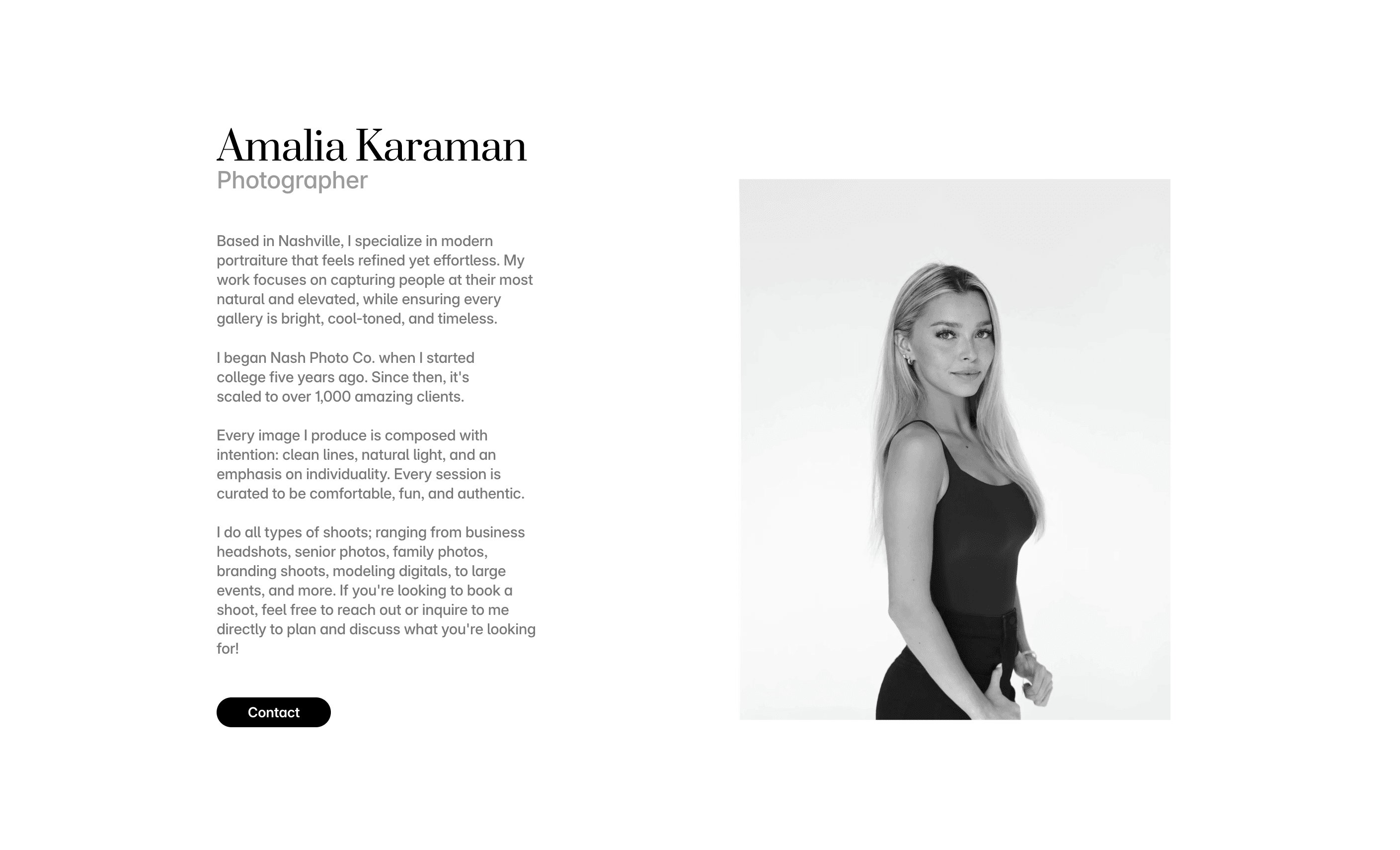 I designed Nash Photo Co's platforms to feel simple, clear, and trustworthy. The visual world is bright and natural match my photography style and establish the brand cohesively.